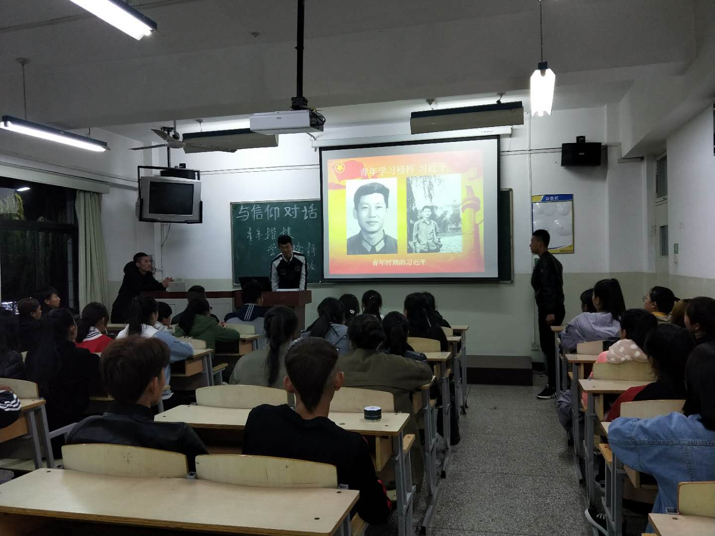 各班团支部通过观看图片、视频和自由讨论等形式共同学习,《习近平的七年知青岁月》中用真实的历史细节,讲述了习近平总书记当年“苦其心志、劳其筋骨、饿其体肤、空乏其身”的历练故事,展示了青年习近平矢志不渝的理想追求、爱国为民的家国情怀、勤奋好学的进取精神、求真务实的良好作风、吃苦耐劳的优秀品质。