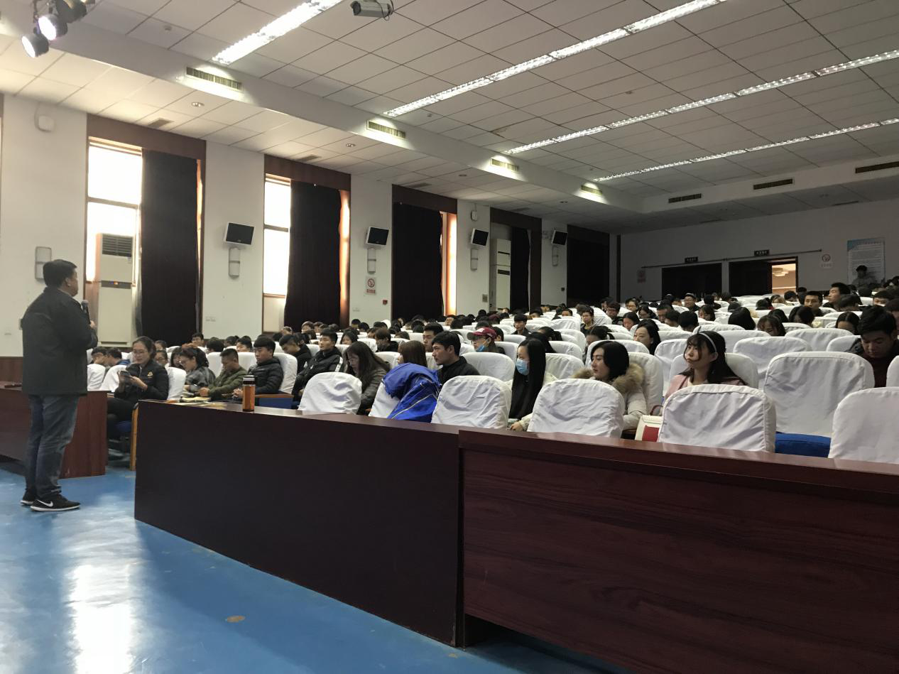 生命文化学院的同学们正在认真的听何振锋院长部署工作