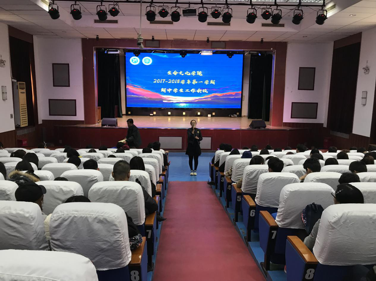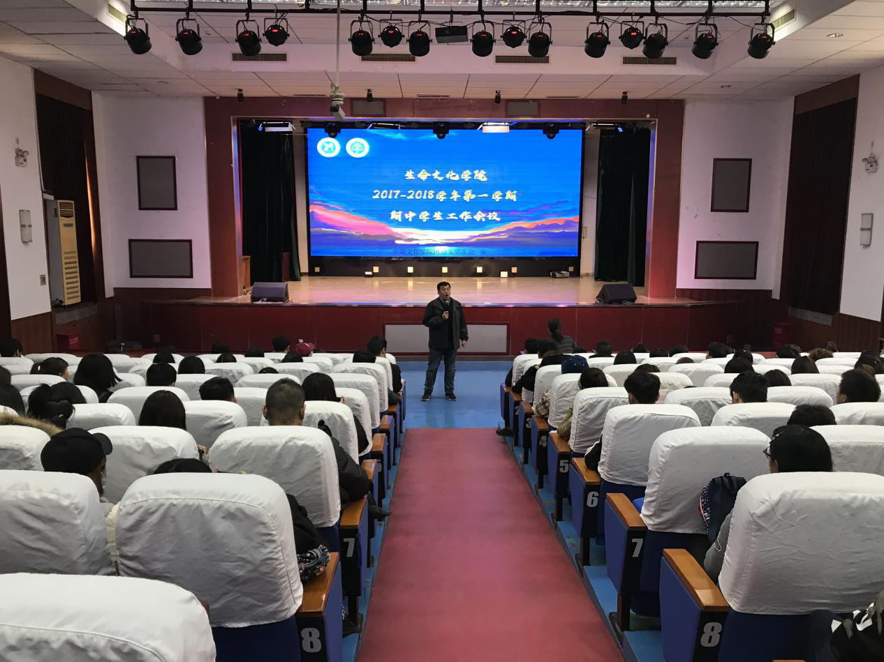 2017年11月9日,生命文化学院2017-2018学年第一学期期中学生工作会议于学术报告厅圆满召开,生命文化学院副院长何振锋教授,院长助理徐莉老师,2017级辅导员朱全华老师及生命文化学院全体同学们参加了此次会议。此次会议由徐莉老师主持,何振锋院长主讲。