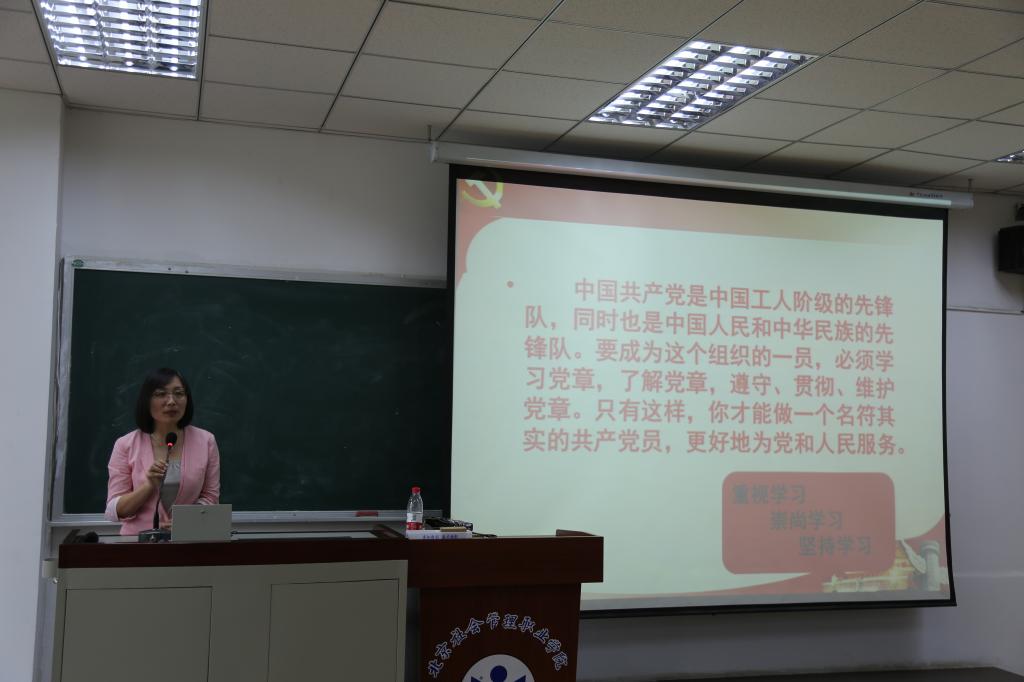党支部书记赵学慧向参加本次党课学习的同学们提出了三点要求,一要重视自我的理想追求和政治信仰;二要认真学习认真了解;三要坚持不懈,始终如一,希望同学们了解我党的理论、政策、方针,忠于信仰,忠于追求,早日成为一名合格的共产党员。党支部副书记何振锋强调,希望每一位同学要务必认真听讲,参加每一次的学习,将学习内容内化于心,外化于行,要在日常的行为规范中做出表率,坚持政治立场、政治信仰。