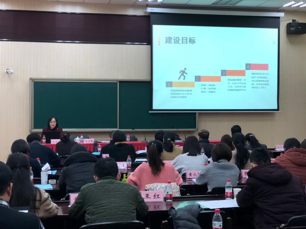 为进一步推进社会工作专业教学资源库建设,完善并充实资源库各项素材资源,加强合作化课程资源建设,提升资源库建设的整体系统性,2018年1月5日,学院召开职业教育社会工作专业教学资源库建设推进会,相关共建及参建院校、机构等16家院校单位相关负责人、老师60余人参加会议。