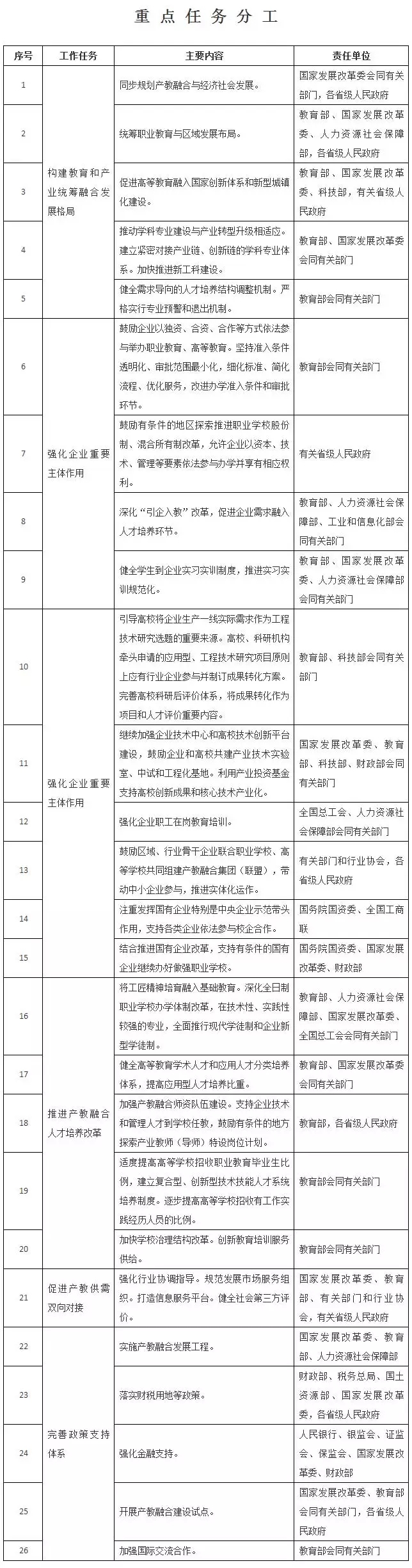 (二十九)强化工作协调。加强组织领导,建立发展改革、教育、人力资源社会保障、财政、工业和信息化等部门密切配合,有关行业主管部门、国有资产监督管理部门积极参与的工作协调机制,加强协同联动,推进工作落实。各省级人民政府要结合本地实际制定具体实施办法。