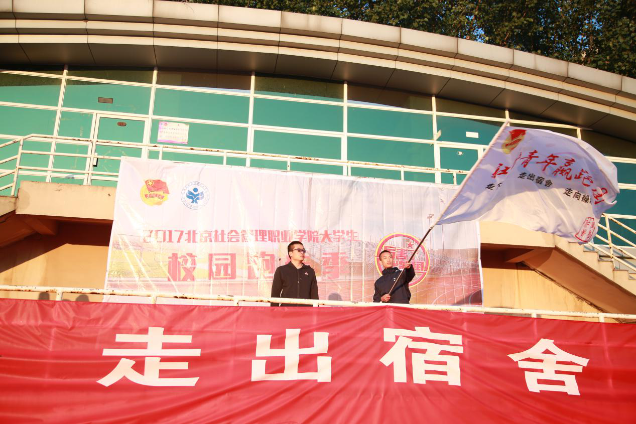 仪式上,校赢跑团负责人曹圣同学为校园跑步季第一周冠军获得者谭镇明同学颁奖。院团委张洪来老师为赢跑团授旗,赢跑团负责人曹圣同学向全体同学们发出了“走下网络,走出宿舍,跑向操场,跑向校园,跑向属于我们青年人的未来!”的倡议。