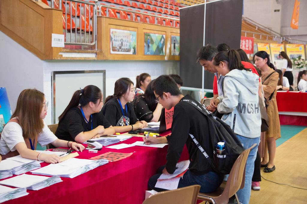 在校园里,我们的志愿者也以良好的精神风貌,迎接着每一位新生和家长们的到来。各(院)系在体育馆前都设置了迎新志愿服务点,他们以最便捷的方式,熟练地带领着新同学,完成一系列的报到手续,减轻新生和家长的负担。