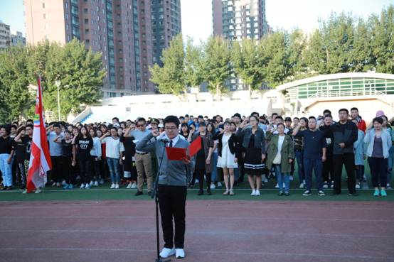 团委王丹书记在国旗下发表讲话,强调青年人要时刻铭记国耻,发奋图强。不忘落后就要挨打的经验教训,坚定中华民族伟大复兴的信念,珍惜来之不易的幸福生活,努力学习,立志成才,为实现中国梦而努力奋斗。