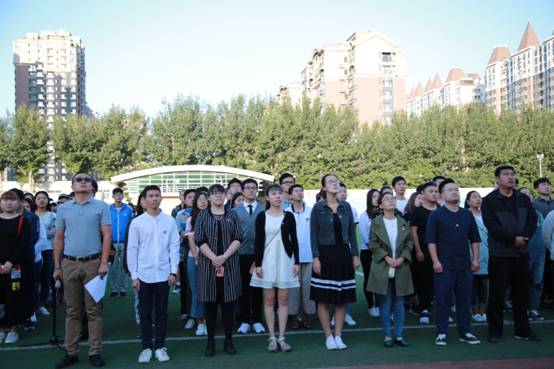 9月18日早上,在升旗台前,伴随着庄严雄壮的国歌声,鲜艳的五星红旗冉冉升起。“勿忘国耻,爱我中华;铭记‘九一八’,共筑强国梦”为主题的升旗仪式在学院操场举行。学生处(团委)老师、各(院)系团总支书记、辅导员老师、主要学生干部和16级1500余名学生参加升旗仪式。
