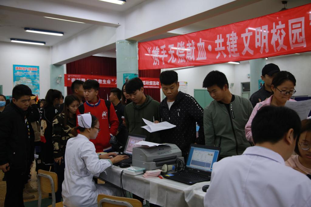 前来参与献血的同学们络绎不绝,他们在工作人员及学生志愿者的引导下,依次有序地进行填表、体检、化验……学子们纷纷用自己的热血抒写了一曲曲爱的赞歌。“参与无偿献血是我一直以来都在坚持的事情,我相信从自身做起,可以影响带动更多身边的人。”来自我院生命文化学院的付芳馨同学如是说,其累计已经无偿献过两个单位的血小板和800cc的血液。
