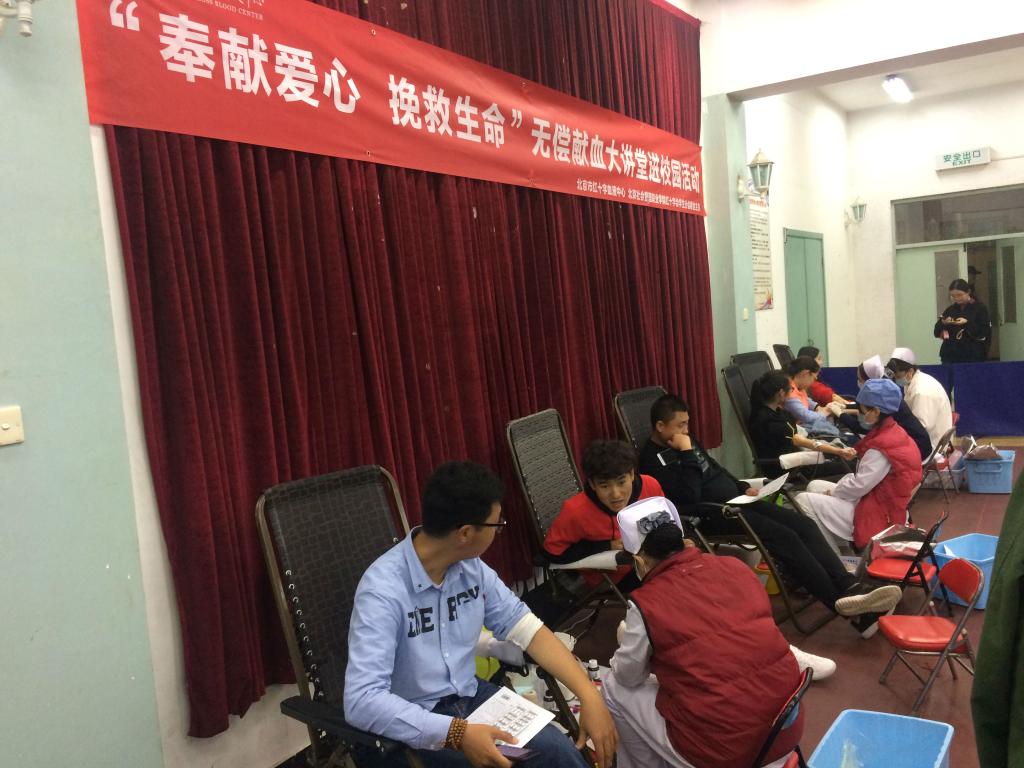 为推进无偿献血公益宣传教育,营造积极参与无偿献血的良好氛围,促进我院文明校园建设。10月24日、25日,我院红十字会学生分会与北京红十字血液中心在我院共同举办了“无偿献血进校园”活动,全校师生踊跃参与,校内掀起了无偿献血的爱心热潮。