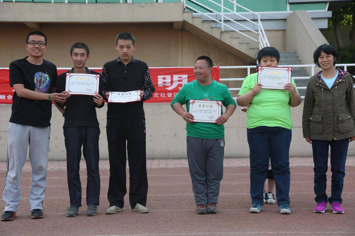 比赛共设10个项目,每个项目都有服务对象和志愿者参加,志愿者们与服务对象共同开展了定点投沙包、套圈比赛、蚂蚁搬家等十个比赛项目,在最后一个拔河项目中院团委青年志愿者协会代表队与服务对象共同赢得了第一名,运动会现场,每支代表队的运动员积极参与,志愿者与服务对象相互扶持、团结友爱,本次活动不仅人人参与,而且充分体现了残健融合的理念。不仅仅是环境的变化,更是一种社会的接纳,让服务对象有机会拥有更大的展示平台,期待融合之路越走越远,越走越宽。活动最后,老师和爱心企业领导给获奖的服务对象们颁发了奖状和奖品。